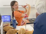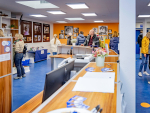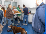 Frau Greub steht an der Theke und möchte Hundefutter,