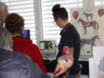 unter dem Mikroskop wird gesucht im Kot der Wurm.