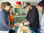 Die Welpen per Kaiserschnitt aus dem Bauch werden genommen.